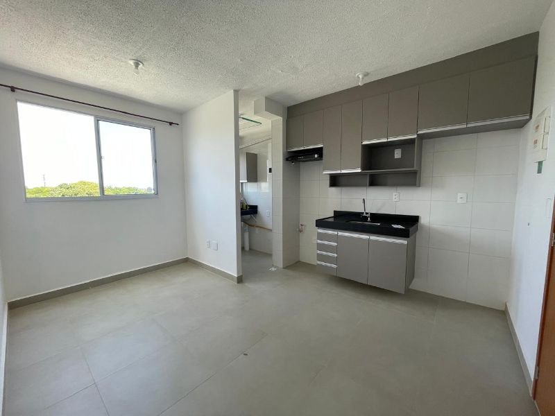 02 QUARTOS, 01 SALA, 01 COZINHA, 01 BANHEIRO, ÁREA DE SERVIÇO E GARAGEM PARA 01 CARRO, PORTARIA 24HRS, PLAYGROUD, ELEVADOR, SALÃO DE FESTA.