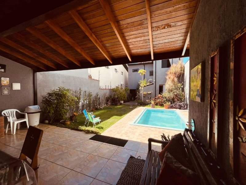 CONTA COM 03 DORMITÓRIOS, SENDO 01 SUÍTE, 01 BANHEIRO SOCIAL NA PARTE SUPERIOR E 01 LAVABO NA PARTE INFERIOR, POSSUI SALA AMPLA EM CONCEITO ABERTO, COZINHA FUNCIONAL, QUINTAL ESPAÇOSO COM PLANTAS FRUTÍFERAS, PISCINA E ÁREA GOURMET COM CHURRASQUEIRA E MAIS 01 LAVABO, GARAGEM COBERTA PARA 02 CARROS.